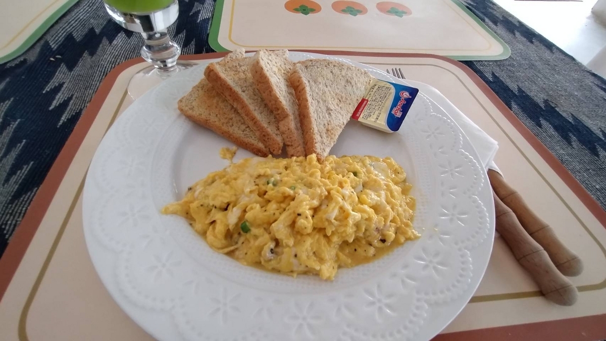 スクランブルエッグとトーストのセットにしました。あと、ドリンクも選べましたので、キーウィジュースにしました。