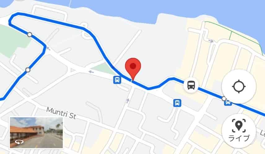 ちなみにGoogleMapでバス停をタップし、その詳細の中にある路線番号を選ぶと、青い線で路線図が表示されます。さらにバスのアイコンが表示され、これはバスの現在地を表しています。