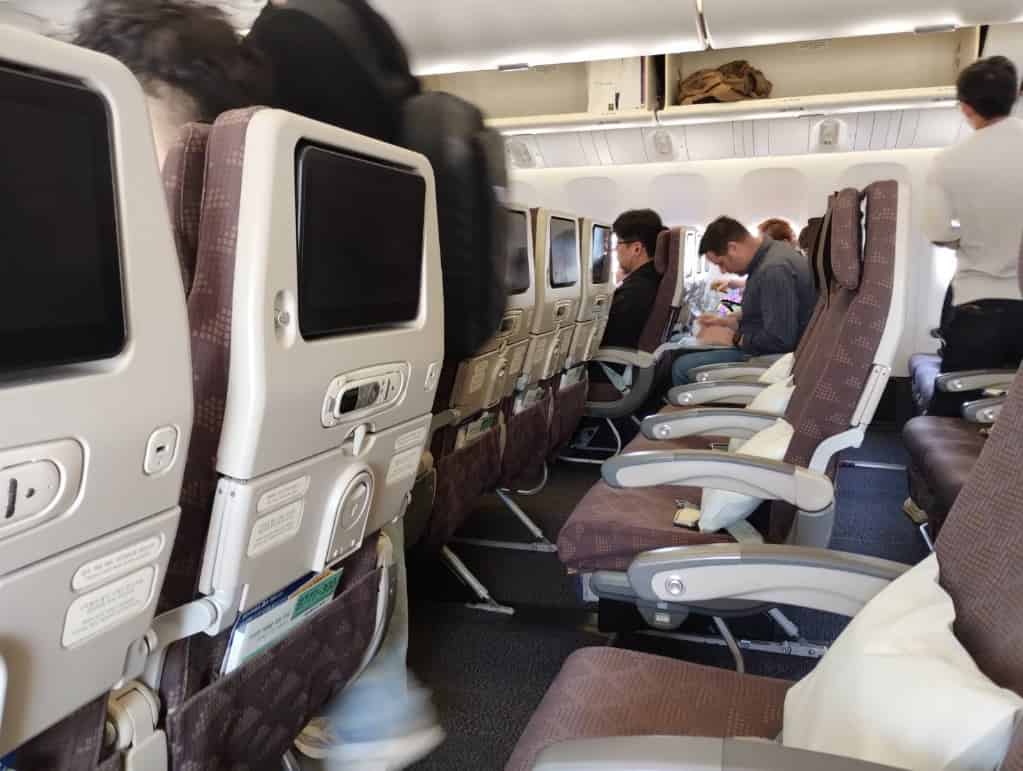 機体はボーイング777です。通路が2本のワイドボディ機なので、ゆったりしています。