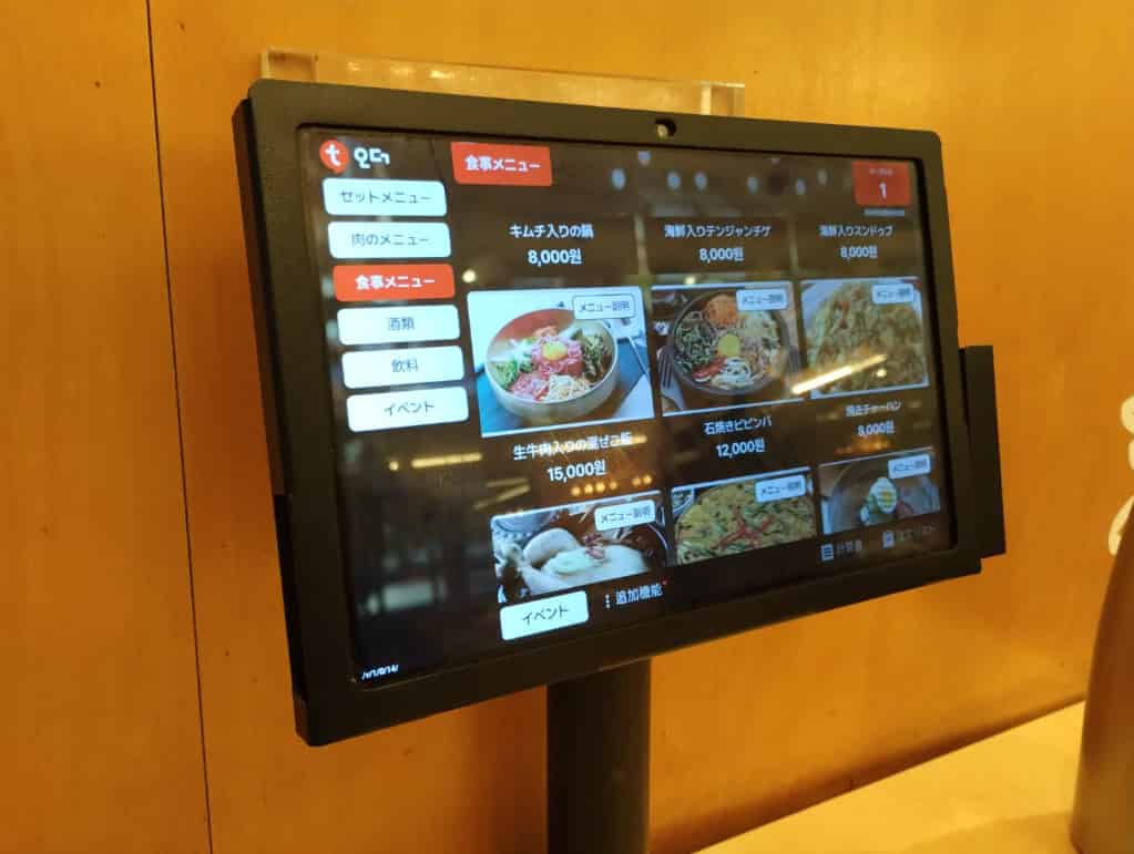 本来は複数人できて、焼き肉などを食べるところなのでしょうが、一人なので、石焼ビビンバを注文します。タッチパネルでオーダーも簡単です。