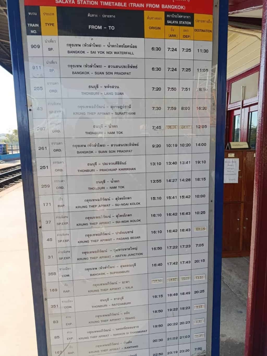 左の写真がバンコク方面から来る列車の時刻表です。